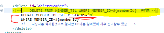 기존의 delete로 시작했으나 오늘은 회원관리 한단계 한가지 더 배움.......