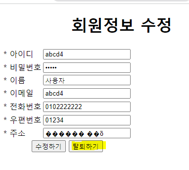 드디어 마지막 회원정보 수정들어갑니다...로그인 정보는 session에 넣어두었던거 불러옴