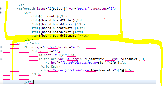 리스트 데이터를 받아서 출력하는 부분과 페이징 부분을 출력하는 부분......