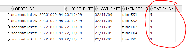 -> UPDATE SEASONTICKET_TBL SET EXPIRY_YN = 'Y' WHERE MEMBER_ID='timeEX5';