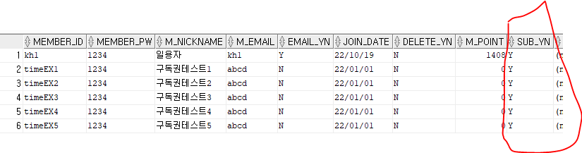 -> UPDATE MEMBER_TBL SET SUB_YN='N' WHERE MEMBER_ID='timeEX5';