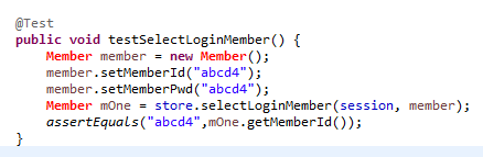 assertEquals("abcd4",mOne.getMemberId()); 결과값에 관련된 구문을 넣을때 예시다....