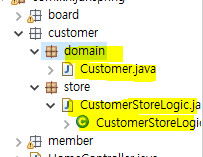 customer패키지// domain 패키지//store패키지와 클래스들 만들고 클래스만들면 get,set 기본생성자 매개변수 생성자 만들건 기본..