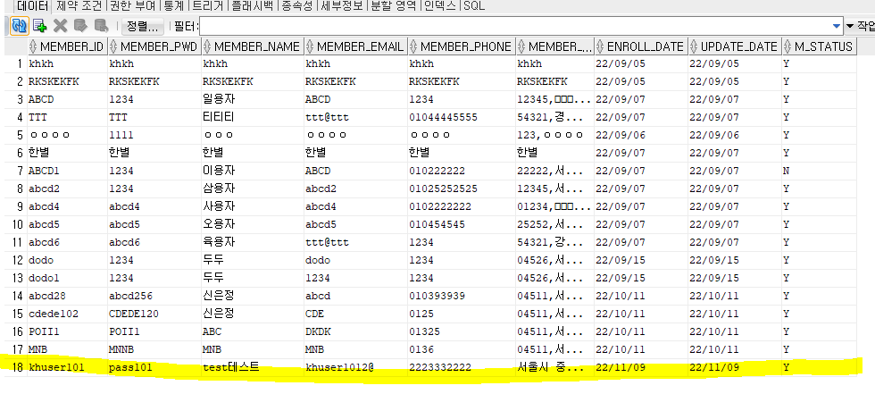 추가로 한개 더!! select값이 나오는데...에러는 아닌데 실패로 잡힌다.......한가지 빼머었다..