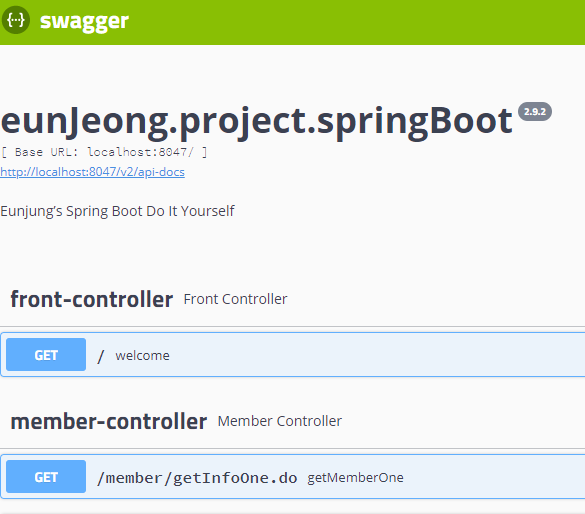 .description("Eunjung's Spring Boot Do It Yourself") //스웨거가 먼지 설명