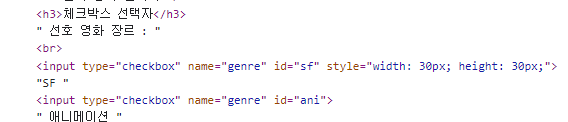 <input type="checkbox" name="genre" id="ani"> 애니메이션