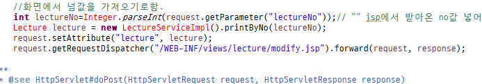 보통은 request. getRequestDispatcher를 통해서 jsp 주소만 받아서 가는데
