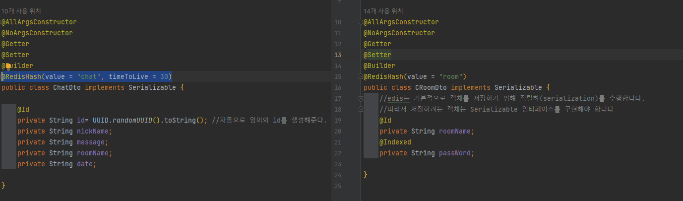3. dto ..저는 채팅룸과 실제 채팅내용을 분리해서 만들었습니다.
