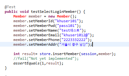 // fail("Not yet implemented"); 없다면 아무것도 검증하지 않으므로 성공임....