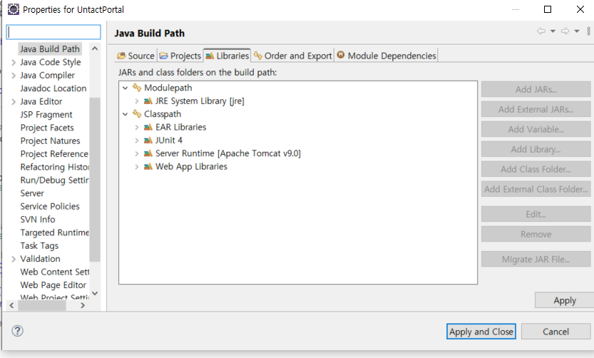 어찌저지....Modulepath에 JRE만 남겨놓고 나머지는 Classpath쪽으로 이동시키니깐 저 에러는 해결되었음...