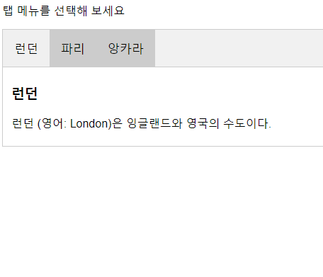 $(".tablinks:eq(0)").addClass("active"); // 런던탭의 색상이 #ccc로