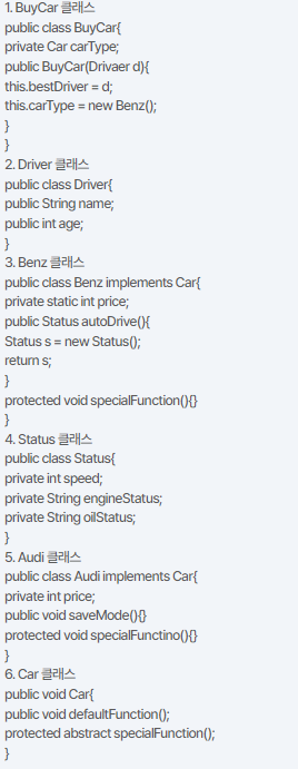 1. BuyCar 클래스 //Driver 클래스와 집합관계 // Benz의 합성관계
