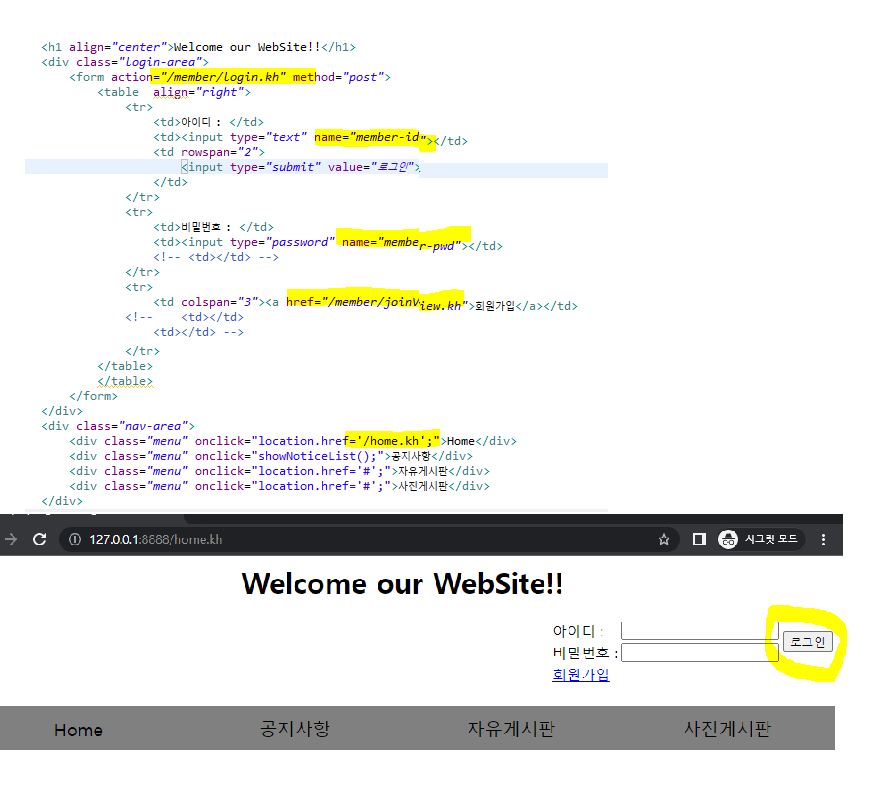 화면단 구성하고..로그인 버튼을 누르면 ? member/login.kh로 간다.