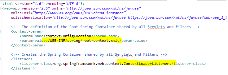 . ContextLoaderListener : controller가 공유하는 bean들을 포함하는 spring Container생성한다. (컨덱스트단위설정)